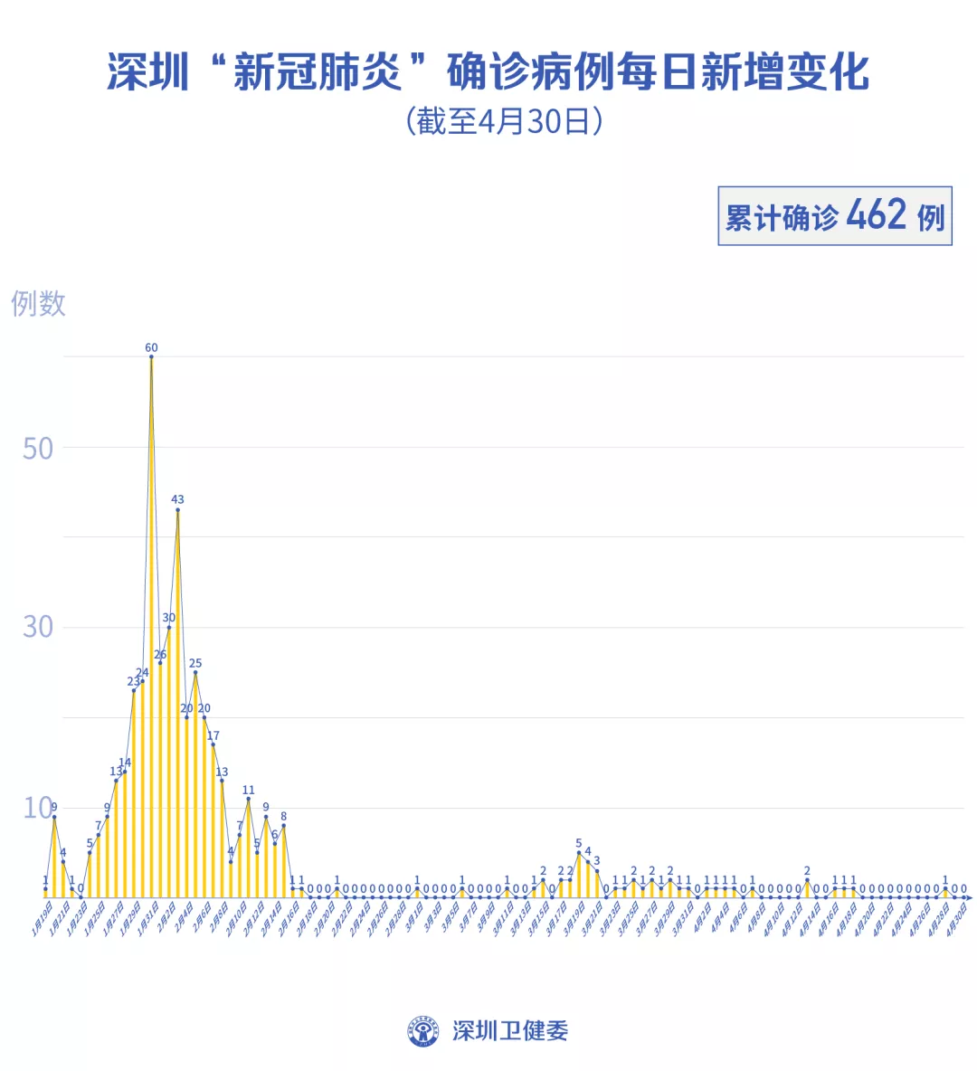截至4月30日24時,深圳累計報告新冠肺炎病例462例。4月30日當天新增無癥狀感染者2例,出院1例。