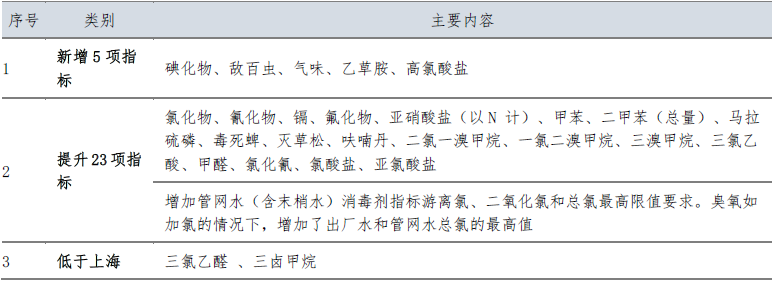 深圳市《生活飲用水水質(zhì)標(biāo)準(zhǔn)》與上海標(biāo)準(zhǔn)相比,增加了5項(xiàng)指標(biāo),提升了23項(xiàng)指標(biāo)(含消毒劑);附錄增加了18項(xiàng)指標(biāo),考核方法上提升了出廠(chǎng)水和管網(wǎng)水合格率要求,增加了嗅味物質(zhì)檢測(cè),重點(diǎn)關(guān)注龍頭水水質(zhì)。