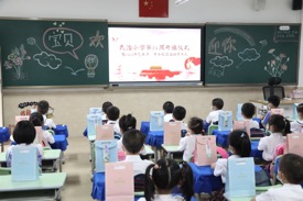 螺嶺外國(guó)語(yǔ)實(shí)驗(yàn)學(xué)校三年級(jí)(12)班的學(xué)生林子軒專門為老師做了小折扇,一進(jìn)校門就送到了老師手里,怕老師熱。