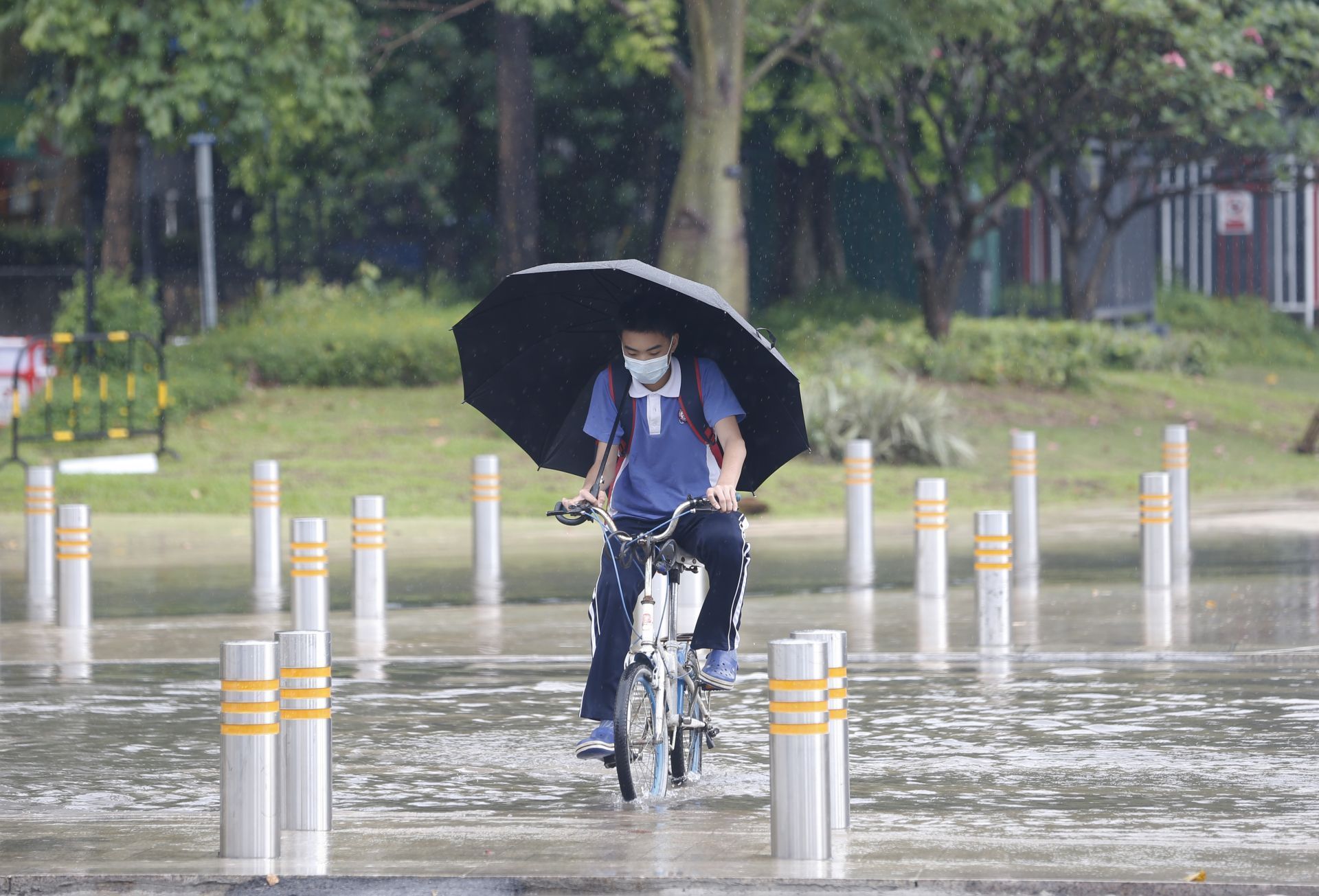 短時強(qiáng)降雨午間再次來襲 市民穿拖鞋帶雨傘出行