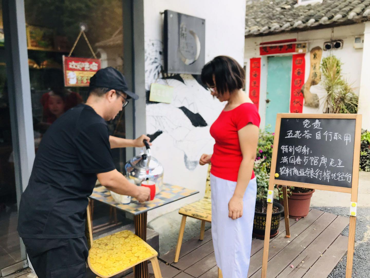在這次愛心援助之后,上圍藝術村更是掀起了一股“愛心接力”的浪潮,村民和藝術家們積極地接過接力棒,紛紛響應起來。國家級非遺傳承人張和玉醫(yī)生,為大家按照時節(jié)、氣候開了更專業(yè)的涼茶方子;滿園春農(nóng)莊貢獻了五花茶材料和相關用品;駐村藝術家雍明支持制作了“關于涼茶的愛心拉力”公示牌貼在了涼茶提供處……