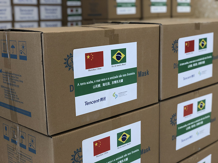為支持國際抗疫合作,在深圳市委外辦指導(dǎo)支持下,騰訊公司聯(lián)合深圳市國際交流合作基金會(以下簡稱“基金會”),向巴西里約熱內(nèi)盧市捐贈20萬個口罩,其中包含10萬個一次性醫(yī)用口罩和10萬個KN95口罩。7月14日上午,抗疫物資捐贈儀式在福田區(qū)NEO企業(yè)大廈舉行。