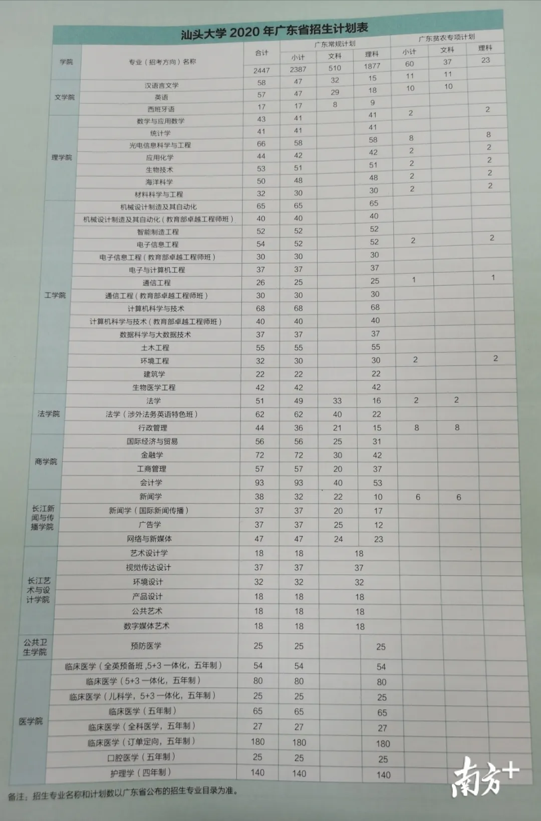 汕大本科生招生計劃數(shù)為3100人,新增預防醫(yī)學、藥學專業(yè),分別招生30人、20人,并增加新聞學專業(yè),新增國際新聞傳播方向,招生45人。