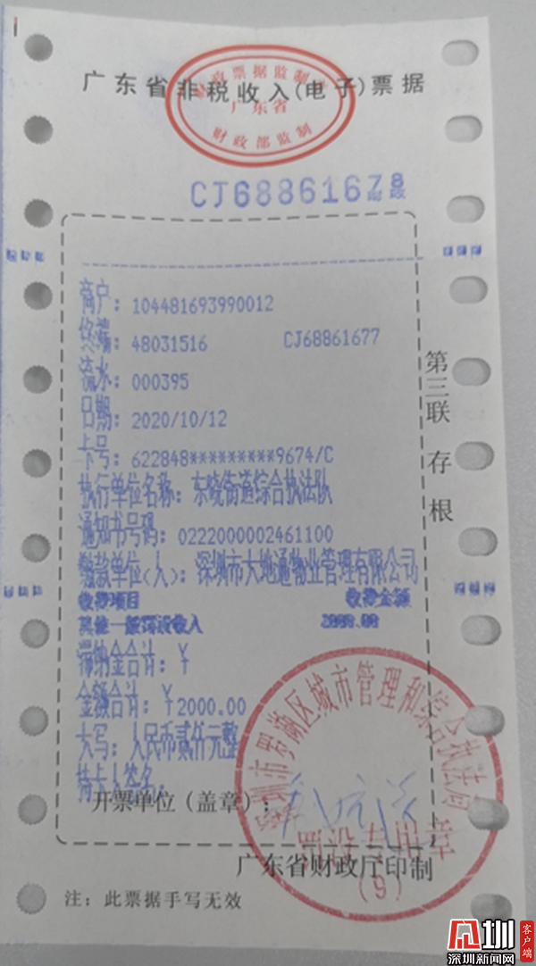 深圳新聞網(wǎng)訊 (見圳客戶端、深圳新聞網(wǎng) 記者 彭桂紅 通訊員 吳清慶)9月1日,《深圳市生活垃圾分類管理?xiàng)l例》正式實(shí)施,經(jīng)過一個(gè)月的執(zhí)法警示期,10月起,深圳垃圾分類進(jìn)入集中執(zhí)法階段,對不開展垃圾分類等行為正式開罰。記者10月14日獲悉,深圳市羅湖區(qū)東曉街道執(zhí)法隊(duì)10月12日,開出轄區(qū)首張物業(yè)罰單,對深圳市大地通物業(yè)管理有限公司因垃圾分類投放點(diǎn)和收集容器未保持整潔立案查處,作出罰款人民幣2000元的行政處罰。行政處罰相對人已依法繳納罰款。