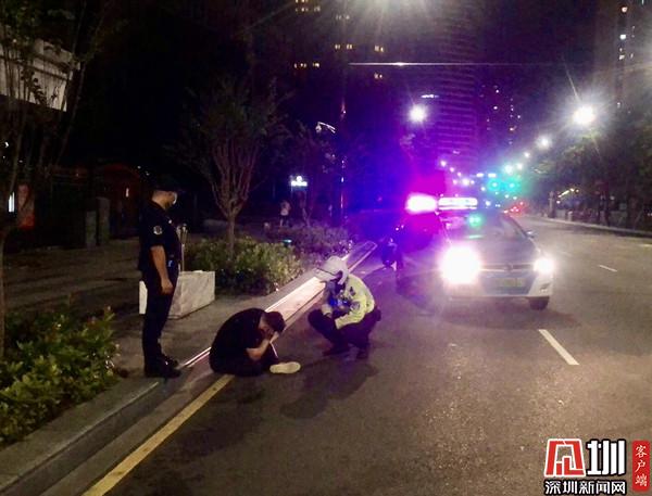 近日晚,羅湖交警總臺(tái)接到報(bào)警,稱在解放路有一名男子走在機(jī)動(dòng)車道上來回徘徊,情況十分危險(xiǎn)。接到警情后,羅湖鐵騎黎江濤、胡洋迅速趕往現(xiàn)場(chǎng)。