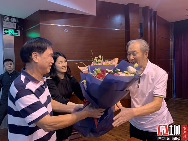 演講結束后,有不少居民現(xiàn)場分享自己的奮斗故事與對深圳的熱愛。在舞臺的另一邊有兩位聽眾上臺給蔣開儒老師送花?!啊洞禾斓墓适隆返墓适乱恢奔钪覀?,我是1984年來的深圳,看著深圳的起步和發(fā)展。今天親臨現(xiàn)場聽到蔣老師(蔣開儒)分享的人生經(jīng)歷,感覺特別有共鳴。相信春天的故事會延續(xù)下去,深圳將再創(chuàng)輝煌?!惫鹉緢@老年人協(xié)會會長徐紅光情緒激動地說道。