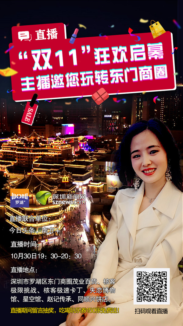 深圳新聞網(wǎng)訊(見圳客戶端、深圳新聞網(wǎng)記者 李慧 劉晨)提前探秘經(jīng)典活動(dòng)“68小時(shí)不打烊”熱潮、體驗(yàn)全亞洲最長的室內(nèi)索道、打卡失戀博物館、7D星空魔幻藝術(shù)館、走進(jìn)手沖姜撞奶的原創(chuàng)品牌糖水店、品嘗深圳特產(chǎn)……10月30日(本周五)晚上7:30-8:30,由深圳新聞網(wǎng)聯(lián)合深圳市羅湖區(qū)融媒體中心共同打造,聯(lián)合今日頭條、南方+直播平臺,為市民開啟東門商圈狂歡預(yù)熱,解鎖“雙十一”嗨購方式,并在直播時(shí)段每隔20分鐘抽取一次幸運(yùn)網(wǎng)友,發(fā)放免費(fèi)150張吃喝玩樂禮品券。