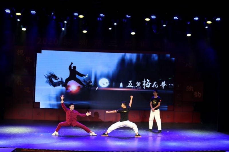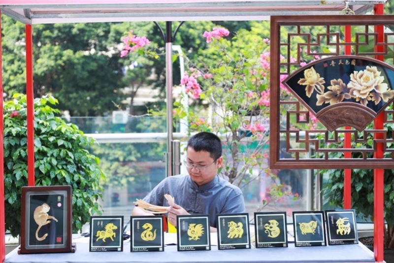 開幕式伊始,羅湖區(qū)第六批非物質(zhì)文化遺產(chǎn)代表性項目現(xiàn)場授牌。自此,《五勢梅花拳》《鄭氏金銀細工制作技藝》《王氏面塑》《楊氏中國結(jié)》《聶氏麥稈畫》《盆景藝術》《萃華金銀制品(花絲鑲嵌與鏨刻)工藝》等7項傳統(tǒng)藝術,成為羅湖區(qū)新一批非遺項目。