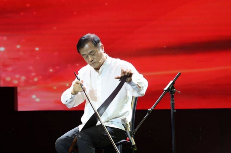 隨后,《鋸琴藝術》傳承人李元慶在不斷變換鋸片彎曲角度、拉動馬尾弓期間,奏出一首長達近4分鐘的悠揚樂曲。他說,自己拉了30年鋸琴,希望讓更多人了解這門非遺藝術。在他的鼓勵下,觀眾席里兩名小學生舉手上臺,用鋸琴敲出長短不一的音符。
