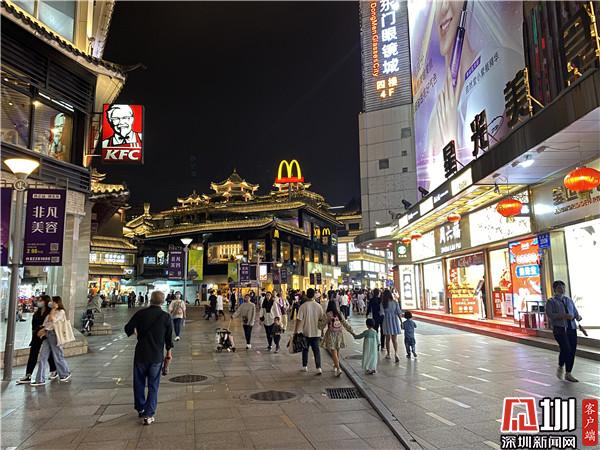 華燈初上,煙火氣十足的東門(mén)步行街。