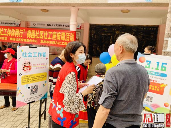 見圳客戶端· 深圳新聞網(wǎng)3月16日訊(記者 郭含笑 實習生 覃鈺清 通訊員 李珍鳳 張亮亮)為進一步提高社會工作的影響力,樹立社會工作專業(yè)形象,3月16日下午,深圳市清水河街道梅園社區(qū)黨委、深圳市東西方社工服務社駐梅園社區(qū)黨群服務中心的社工開展了“幸福梅園 社工伴你同行”社工宣傳周活動。
