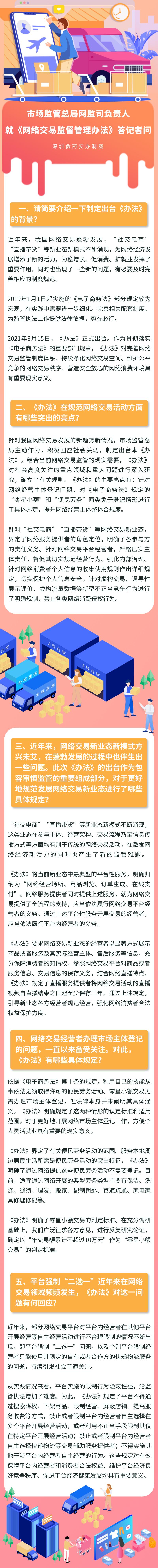 《辦法》明確了網(wǎng)絡(luò)交易監(jiān)管堅(jiān)持鼓勵(lì)創(chuàng)新、包容審慎、嚴(yán)守底線、線上線下一體化監(jiān)管原則,提出推動(dòng)完善多元參與、有效協(xié)同、規(guī)范有序的網(wǎng)絡(luò)交易市場治理體系,對網(wǎng)絡(luò)經(jīng)營主體登記、新業(yè)態(tài)監(jiān)管、平臺經(jīng)營者主體責(zé)任、消費(fèi)者權(quán)益保護(hù)、個(gè)人信息保護(hù)等重點(diǎn)問題作出了明確規(guī)定。