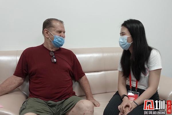 外籍人士Miller先生在妻子江女士的陪同下來(lái)到了羅湖醫(yī)院接種新冠疫苗。江女士說(shuō),Miller很喜歡中國(guó),也熱衷于中國(guó)美食,她和丈夫每年冬天都會(huì)從美國(guó)來(lái)到深圳。今年6月份,江女士計(jì)劃和Miller乘坐飛機(jī)回到美國(guó),由于返回美國(guó)途中需要中轉(zhuǎn)多次航班,Miller認(rèn)為,接種新冠疫苗能夠讓自己的健康多一份保障,所以預(yù)約了新冠疫苗接種。對(duì)于這次的接種體驗(yàn),Miller贊不絕口:“我感覺(jué)非常棒!”