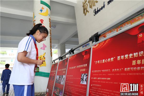 記者首先來到羅湖區(qū)翠北實(shí)驗(yàn)小學(xué),主題展板位于學(xué)校一樓大廳,有很多同學(xué)會(huì)在下課的時(shí)間來這里觀看學(xué)習(xí)。學(xué)校社工邱女士參與設(shè)計(jì)本次活動(dòng)的時(shí)候想到,黨史對(duì)孩子們比較遙遠(yuǎn),想要讓孩子們深入學(xué)習(xí)就不能用大人的方式死板教條的灌輸,要調(diào)動(dòng)孩子們的積極性,讓孩子們自己做“小講師”。