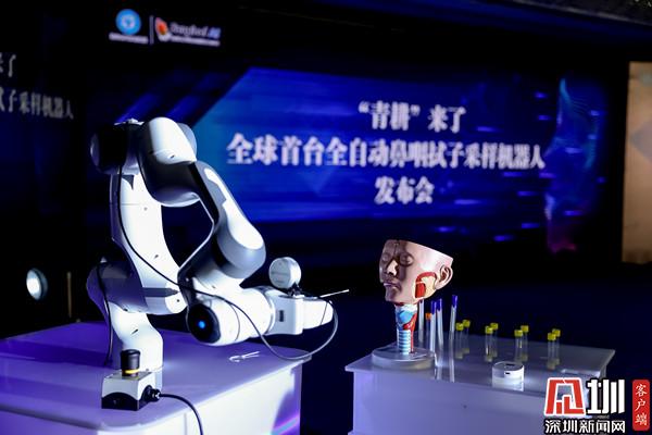 深圳羅湖醫(yī)院集團與杭州湖西云百生科技有限公司研發(fā)人員經(jīng)過一年多的研發(fā)攻關,一款全自動鼻咽拭子采樣機器人原型機誕生。據(jù)了解,這是世界第一臺軟組織上實現(xiàn)力控、自動導航和自動標定的人工智能采樣機器人。