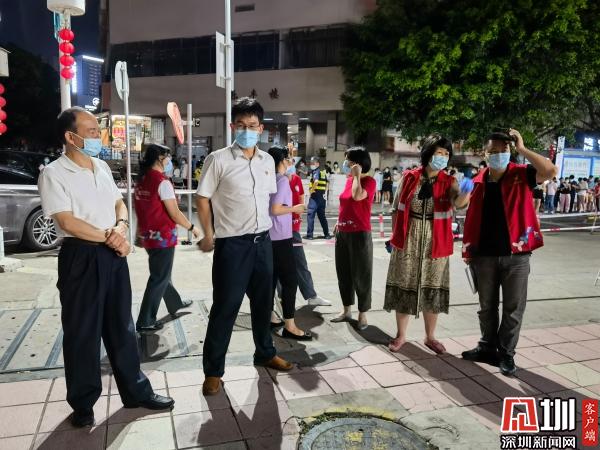 見圳客戶端·深圳新聞網(wǎng)2021年5月27日訊(記者 劉晨 通訊員 魏官明 陳惠冰)5月21日以來,深圳鹽田區(qū)、龍崗區(qū)相繼排查發(fā)現(xiàn)新冠肺炎無癥狀感染者,為堅(jiān)決遏制疫情擴(kuò)散蔓延,全力守護(hù)人民群眾的生命健康安全。羅湖區(qū)東湖街道按照市委市政府、區(qū)委區(qū)政府的統(tǒng)一部署,結(jié)合疫情防控形勢新變化,快速反應(yīng)、周密部署,5月26日下午,火速整合各部門、各社區(qū)近400名工作人員組成6支防疫突擊隊(duì)伍,街道黨工委書記程時菊,黨工委副書記劉慧堅(jiān)、謝統(tǒng)敏、沈文俊,黨工委委員方海峰,二級調(diào)研員張翠紅分別擔(dān)任6支隊(duì)伍的督導(dǎo)長,連夜帶領(lǐng)突擊隊(duì)員們奔赴各相關(guān)社區(qū)開展核酸檢測工作。