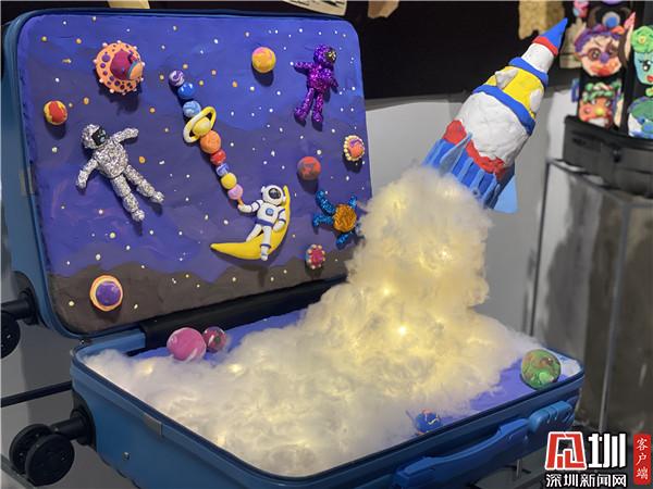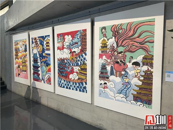 騎著小白兔在天上看四大名樓、把四大名樓帶到宇宙里、在四大名樓上面遇見天空之城……現(xiàn)場,幾幅畫作吸引觀賞者駐留觀看?!皻v代文人墨客用千古名篇頌揚(yáng)四大名樓,而這個《中國四大名樓》系列作品,孩子們將與深圳共成長的切身感受,與歷史畫卷中的四大名樓發(fā)生靈感碰撞,以簡單的水墨畫表現(xiàn)形式,呈現(xiàn)出不可思議的藝術(shù)效果?!弊髌分笇?dǎo)老師于雪在采訪時介紹說道,這一系列的作品,是三四年級的孩子創(chuàng)作,身高沒有很高,但是作品的畫幅很大,而且用的材質(zhì)是宣紙,比較容易破,因此孩子們在繪畫過程中也學(xué)會了調(diào)整身體的位置和紙張比例,以及更加小心翼翼地保護(hù)自己的畫作,這也是他們創(chuàng)作中有趣的過程。