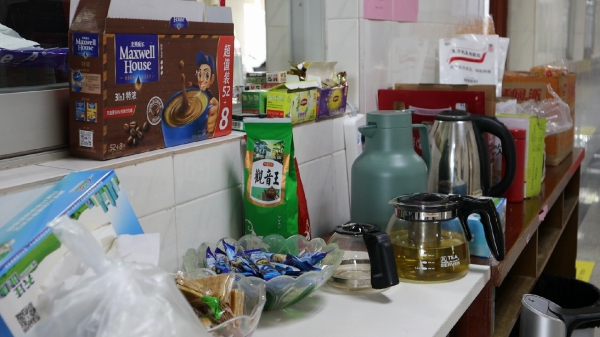 在不大的辦公室,來(lái)自各個(gè)地區(qū)的疾控人員坐在一起,聚精會(huì)神的研究手中的數(shù)據(jù),與同事核對(duì)信息準(zhǔn)確性,不時(shí)有工作人員撥出電話、接到電話,神情專注地聆聽(tīng)聽(tīng)筒后的每一個(gè)數(shù)據(jù)。在門外,一條長(zhǎng)桌上擺滿了各種零食、飲品,一盒潤(rùn)喉糖已經(jīng)見(jiàn)底,一箱功能飲料也已經(jīng)所剩無(wú)幾。