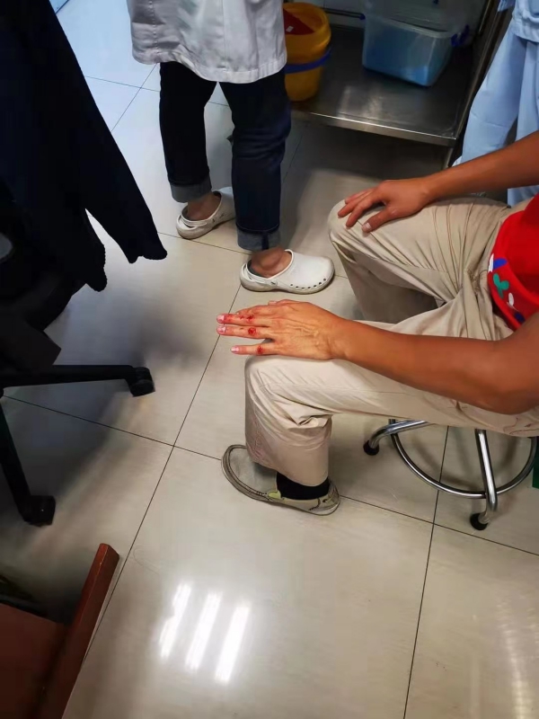 心中著急的梁國(guó)輝剛上路不久,突然間精神恍惚,車頭沒(méi)把穩(wěn),等反應(yīng)過(guò)來(lái)已經(jīng)趴在地上了。網(wǎng)格員王勇剛好路過(guò),扶起梁國(guó)輝送到社康止血與包扎。社康醫(yī)生一邊處理一邊對(duì)他說(shuō):“傷口比較深,現(xiàn)在幫你止血,等一下必須去留醫(yī)部急診處理一下,牙齒也缺了兩塊,怎么傷得那么重呀?”“昨天加班熬夜了,沒(méi)睡好,給你添麻煩了?!绷簢?guó)輝不好意思地說(shuō)道,社康醫(yī)生笑著安撫他:“大家都是兄弟姐妹,我們昨天不是一起在繽紛時(shí)代加班驗(yàn)核酸…”原來(lái)社康醫(yī)生正是此前與自己一起在疫情防控工作的小伙伴之一,便安下心來(lái)接受治療。