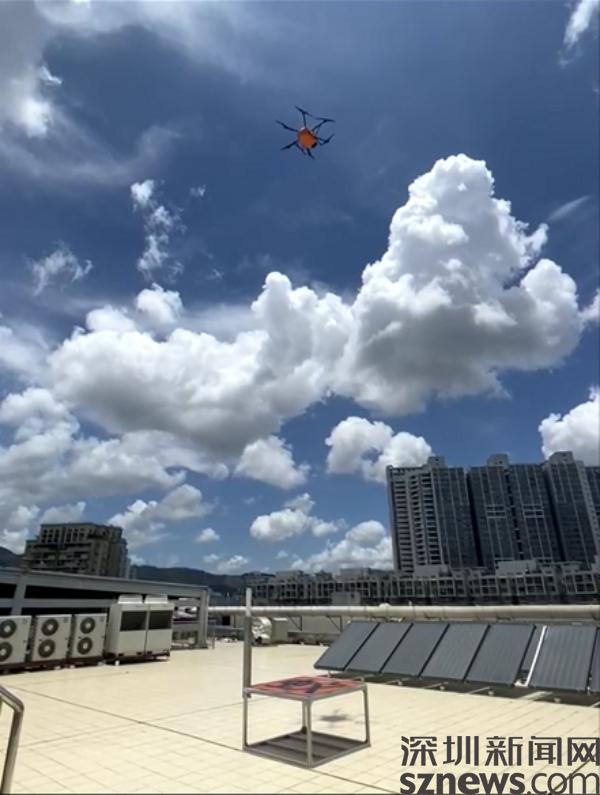 無人機降落在羅湖醫(yī)院集團醫(yī)學檢驗中心停機坪。