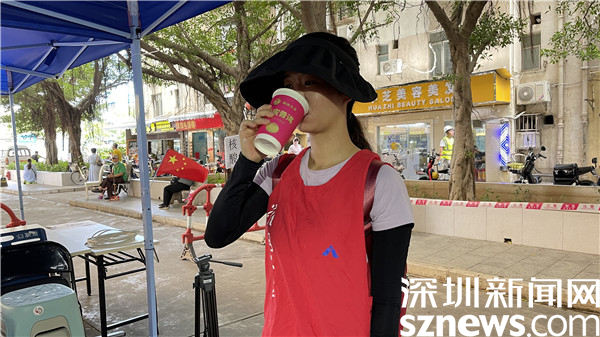 “目前全區(qū)大概有1.1萬名工作人員奮戰(zhàn)在社區(qū)、驛站防疫一線,他們無懼酷暑風雨堅守崗位,用汗水為疫情防控構筑堅實堡壘,羅湖區(qū)婦聯(lián)代表羅湖區(qū)社區(qū)小區(qū)組,積極聯(lián)系愛心企業(yè)瀾滄古茶集團,送上一杯陳皮茶,感謝他們的無私奉獻,也希望他們保護好自己?!秉S毓瓊對記者說。