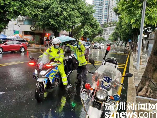 據(jù)了解,為確保大雨天氣下此次中考安全順利進(jìn)行,羅湖交警大隊(duì)高度重視,提前上崗,全力組織轄區(qū)警力疏導(dǎo)各考場(chǎng)周邊交通,并加強(qiáng)駐點(diǎn)值守和執(zhí)勤保障,以及時(shí)為有需要的考生及家長(zhǎng)提供幫助。