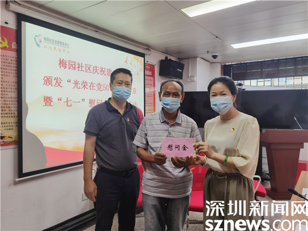 讀特客戶端·深圳新聞網(wǎng)2021年6月30日訊(記者 郭含笑 通訊員 陳秋珊 紀(jì)楚苗)為進(jìn)一步加強(qiáng)和體現(xiàn)黨組織對(duì)黨員的關(guān)心與愛護(hù),在中國(guó)共產(chǎn)黨百年華誕來(lái)臨之際,6月30日下午,深圳市羅湖區(qū)清水河街道梅園社區(qū)黨委在黨群服務(wù)中心二樓會(huì)議室舉行慶祝建黨百年頒發(fā)“光榮在黨50年”紀(jì)念章暨“七一”慰問主題黨日活動(dòng)。