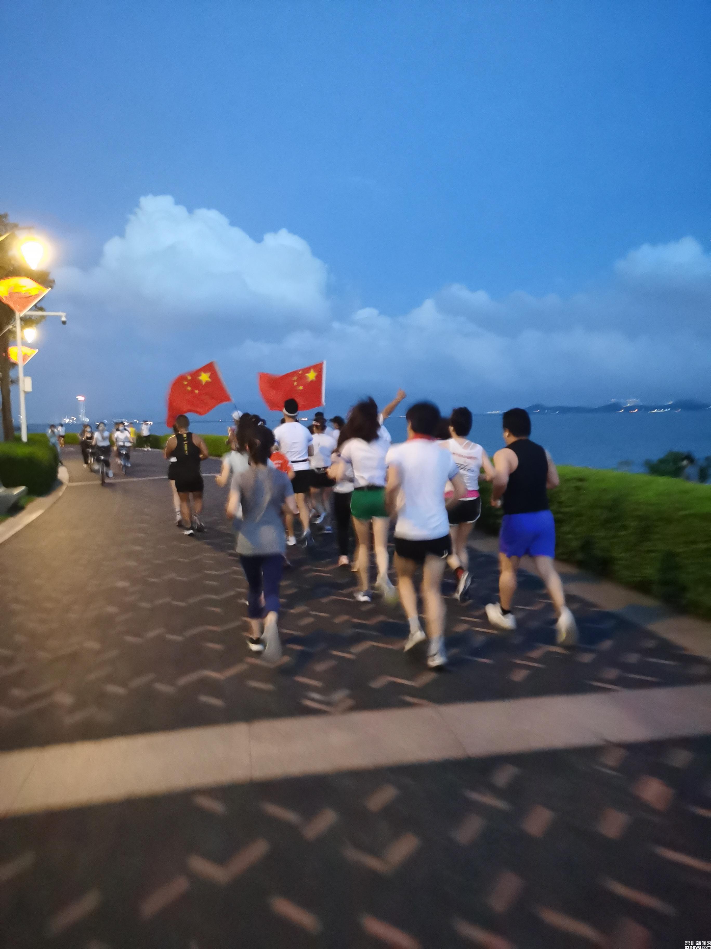 當天晚上,楊雨晨又來到深圳灣公園,與精彩人生跑團的跑友一起,打著五星紅旗,列隊奔跑。大家都是穿著團服自發(fā)而來,由衷地為自己的百年大黨驕傲。也有不少人跟楊雨晨一樣,早上跑完了,意猶未盡,晚上再跑。楊雨晨說:“看了中國共產黨成立100周年大會,心里特別振奮,特別給力,所以,早上跑完,晚上再跟大家一起慶祝?!?/p>