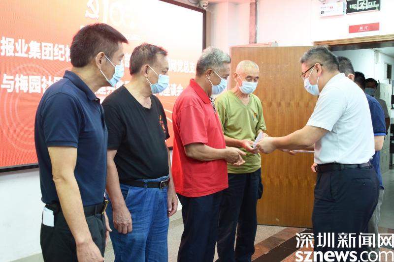 讀特客戶端·深圳新聞網(wǎng)2021年7月2日訊(記者 劉晨 見習記者 邱婕)為慶祝中國共產(chǎn)黨建黨100周年,共同促進黨建共建單位友誼,7月2日上午,市紀委監(jiān)委駐報業(yè)集團紀檢監(jiān)察組組長、報業(yè)集團黨組成員陳鵬帶領(lǐng)深圳新聞網(wǎng)黨總支成員一行來到羅湖區(qū)清水河街道梅園社區(qū),同梅園社區(qū)黨委開展黨建共建座談會及慰問活動,并向“光榮在黨50年”老黨員頒發(fā)紀念章。