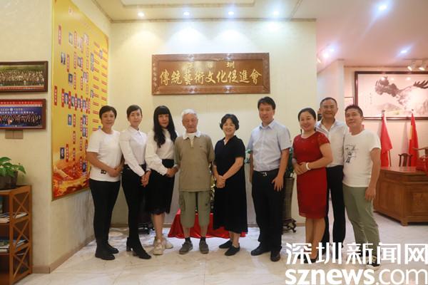 7月15日下午,原深圳大學(xué)校長(zhǎng)、深圳市傳統(tǒng)藝術(shù)文化促進(jìn)會(huì)名譽(yù)會(huì)長(zhǎng)章必功,脖子上戴著輔助呼吸器,大病初愈,在夫人趙玉茹的陪同下到文促會(huì)指導(dǎo)工作。