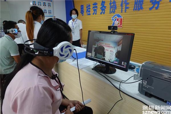 在粵桂勞務(wù)協(xié)作服務(wù)中心,一場(chǎng)兩地遠(yuǎn)程視頻招聘會(huì)正在舉行,不少百姓拿著心儀的崗位介紹在等候面試。服務(wù)中心前臺(tái)放置著四臺(tái)電腦,參加面試的人坐在電腦前連接視頻,視頻的另一端,是來(lái)自羅湖區(qū)的企業(yè)。這樣的視頻招聘會(huì),定期在服務(wù)中心舉行。