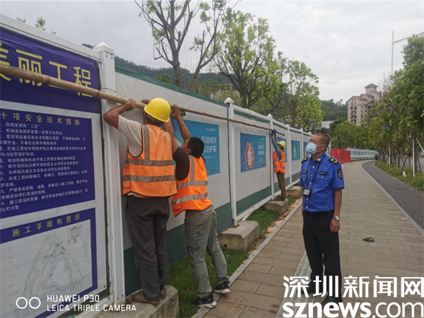 清水河街道黨工委書記魏剛,黨工委副書記、辦事處主任宮雪帶隊開展檢查。執(zhí)法辦派出所有隊員加強戶外廣告設(shè)施巡查和檢查,切斷帶電廣告設(shè)施電源,發(fā)現(xiàn)安全隱患迅速采取措施加固或拆除;要求轄區(qū)內(nèi)所有施工工程全面停工,對圍擋、腳手架做好固定,并加強巡查。