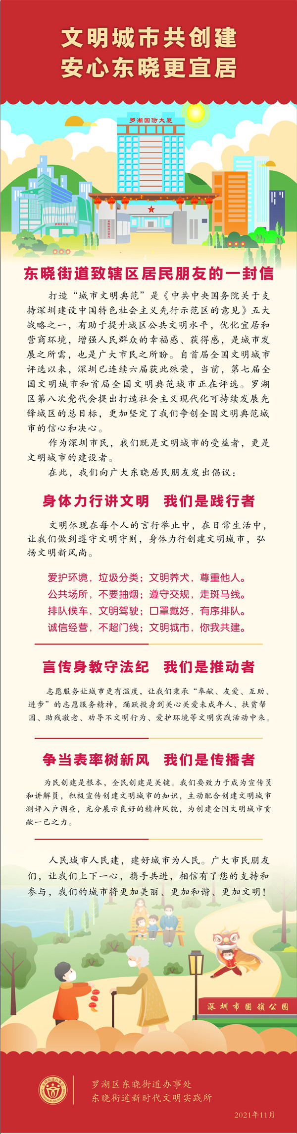 文明城市共創(chuàng)建,安心東曉更宜居!東曉街道致轄區(qū)居民朋友的一封信