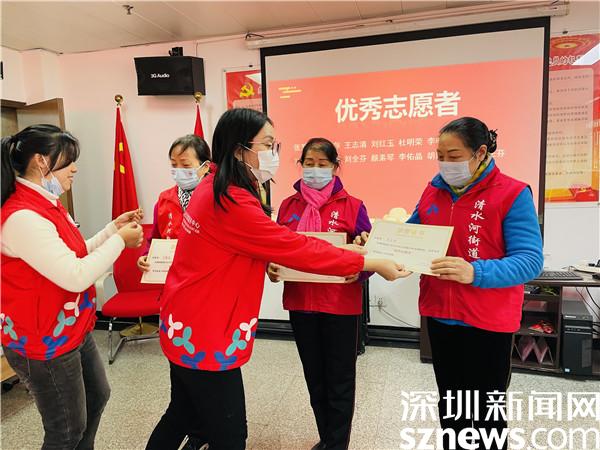 讀特客戶端·深圳新聞網(wǎng)2021年12月28日訊(記者 郭含笑 通訊員 張亮亮)為表彰2021年以來在疫情防控、文明城市創(chuàng)建各項(xiàng)志愿服務(wù)工作中表現(xiàn)突出的黨員、志愿者,充分弘揚(yáng)“先鋒精神、奮斗文化”,發(fā)揮共產(chǎn)黨員先鋒模范作用和社區(qū)志愿者的積極性,進(jìn)一步增強(qiáng)社區(qū)志愿隊(duì)伍的凝聚力和戰(zhàn)斗力,12月28日下午,深圳市羅湖區(qū)清水河街道梅園社區(qū)黨委、深圳市東西方社工服務(wù)社駐梅園社區(qū)黨群服務(wù)中心在梅園社區(qū)新時(shí)代文明實(shí)踐大講堂開展“志愿同心 聚力同行”2021年度志愿者表彰大會(huì)。