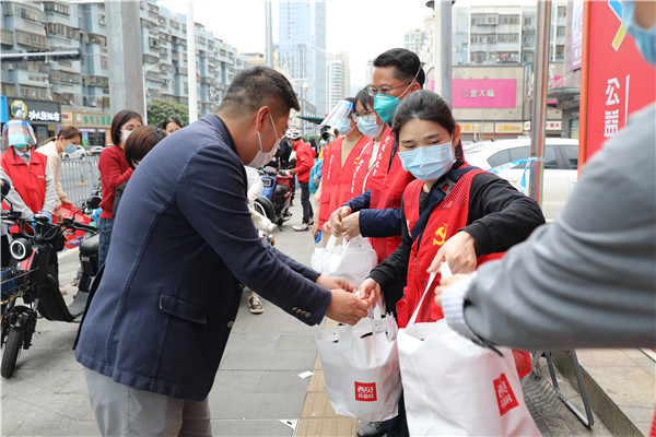 據(jù)弓岳東介紹,當(dāng)天一大早,公司便組織員工開始熬制臘八粥,包裝好就陸續(xù)送到了羅湖翠竹街道水貝片區(qū)疫情防控一線的工作者手中,讓他們在第一時間就能吃上熱騰騰的臘八粥。