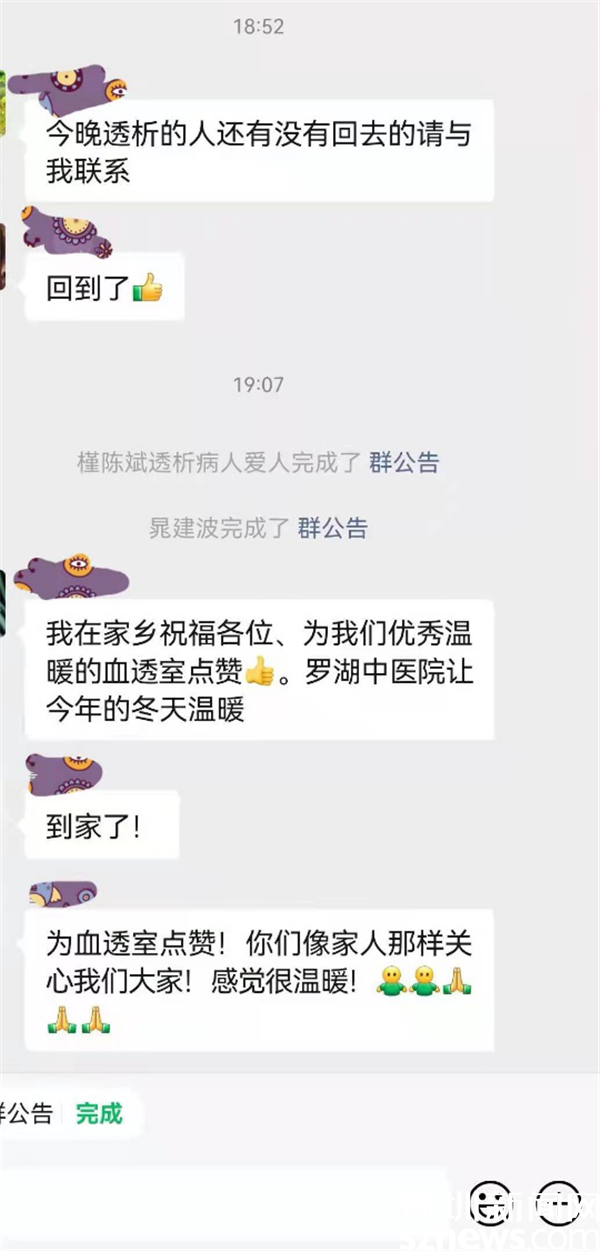 據(jù)羅湖區(qū)中醫(yī)院腎病科血液透析室主任王靜介紹,“0107”疫情發(fā)生后,蓮塘片區(qū)管控區(qū)域的居民只進不出。固定來院血透的患者共有70多名,其中有20多名患者居住在蓮塘片區(qū),還有50多人居住在片區(qū)以外。1月7日下午,第二班的血透患者就面臨著如何回家的問題,院領(lǐng)導迅速部署,與區(qū)疫情防控指揮部充分溝通,醫(yī)務(wù)科、后勤支援部和血透室協(xié)助安排好患者離院事宜?!搬t(yī)院安排車輛把這些患者送到封鎖路口,讓患者放心透析,一定讓病人能夠順利回家?!贬t(yī)院常務(wù)副院長趙宏堅定地說。