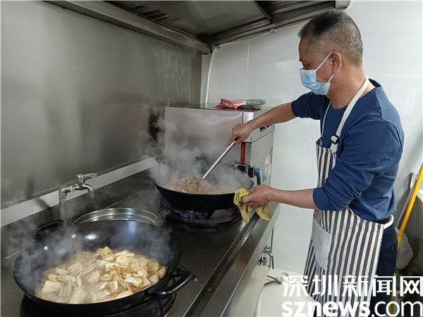 鐘日強(qiáng)是個(gè)熱愛(ài)生活之人,有一手好廚藝。在社區(qū)上下齊心抗疫期間,為了保證忙碌在防疫一線的社區(qū)工作人員、區(qū)里和街道的下沉人員以及志愿者能按時(shí)吃飯,強(qiáng)哥在廚房幫廚,幾十人的中餐和晚餐,他洗菜、切菜、炒菜一條龍,飯菜做得色香味俱全。