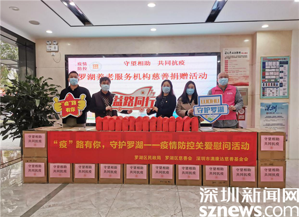 2022年1月17日下午,羅湖區(qū)慈善會聯(lián)合區(qū)民政局舉辦“守望相助共同抗疫——羅湖羅湖養(yǎng)老服務機構(gòu)慈善捐贈活動”,為羅湖區(qū)5家養(yǎng)老服務機構(gòu)工作人員提供共300份“愛心防疫包”,支持養(yǎng)老服務機構(gòu)做好疫情防護工作,切實保護在院老人的生命安全和身體健康。