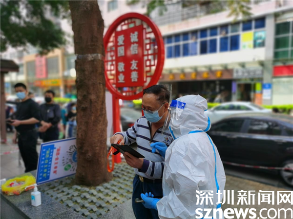 為做好核酸檢測(cè)應(yīng)檢盡檢、愿檢盡檢、不漏一戶、不漏一人。3月5日—6日周末期間,仙湖社區(qū)各核酸檢測(cè)點(diǎn)提前就位,各項(xiàng)檢測(cè)工作正常進(jìn)行。“請(qǐng)來(lái)檢測(cè)核酸的居民朋友,打開(kāi)微信掃一掃場(chǎng)所碼,打卡成功后,切換粵核酸二維碼給工作人員掃碼。接種新冠疫苗48小時(shí)之內(nèi)不能檢測(cè)核酸,謝謝配合?!痹诨ヂ?lián)網(wǎng)產(chǎn)業(yè)園區(qū)的核酸點(diǎn)位,仙湖社區(qū)黨群服務(wù)中心主任劉紅艷腰間圍上裝有試管的袋子,邊掃碼邊宣傳,忙的不亦樂(lè)乎。她說(shuō):“圍著袋子是為了提高掃碼效率,我們每天檢測(cè)7000多人,上千遍都重復(fù)同樣的話,一個(gè)字都不會(huì)錯(cuò)。居民們都很親切的叫我們‘愛(ài)碼士’小分隊(duì),我們也很喜歡這樣的‘愛(ài)稱(chēng)’”。