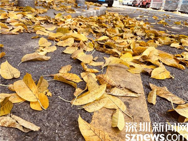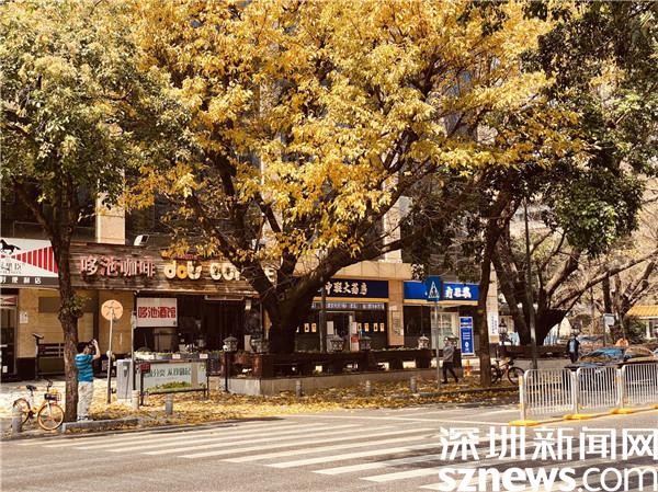 羅湖區(qū)美術(shù)館門前,樹葉正飄落,行人三三倆倆,頗有“半城春色半城秋”之感。