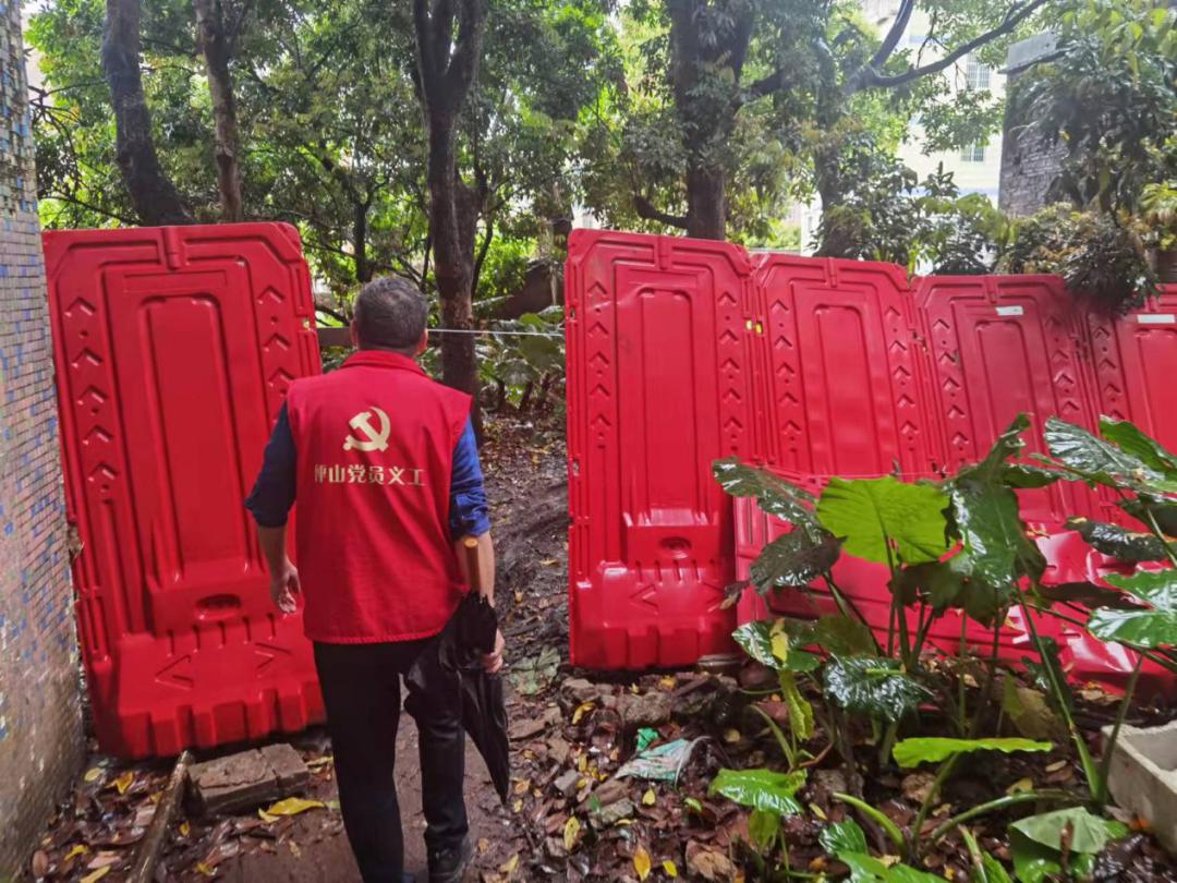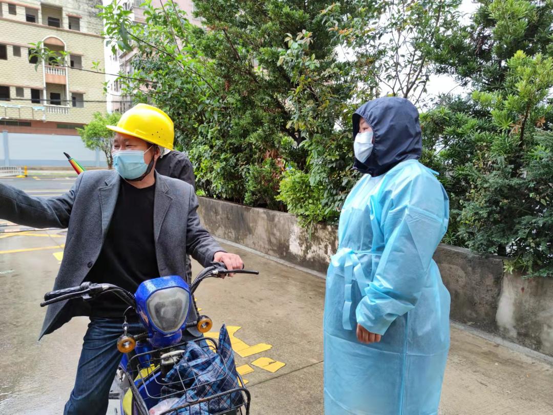 △ 關(guān)工委委員趙為兵、賴碧梅帶頭參與疫情防控工作,動員轄區(qū)物業(yè)、熱心居民共同參與抗疫志愿服務(wù)
