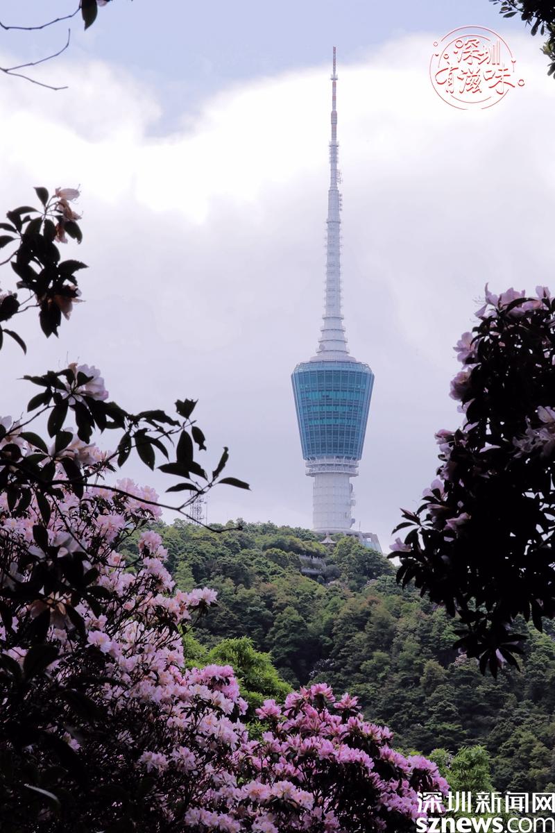春到梧桐,十里繁花十里錦。前往萬花屏的路上,可以拍到電視塔與綻放的毛棉杜鵑花形成的絕美同框畫。
