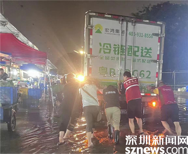 在蘭花社區(qū)豐湖大廈果蔬集散市場,有三輛農產品運輸車拋錨,在接到求助信息后,蘭花社區(qū)黨委副書記鄒添文和其它值班同事立即趕往現場,冒雨將車輛推離市場?!皬?月11日上午9點,到5月12日上午9點,我一直在崗。我們對社區(qū)進行了全面排查,確保暴雨期間居民的生命和財產安全?!编u添文在接受記者采訪時表示,“凌晨三點,我們還在市場處理拋錨車輛,那時候也是雨勢最為迅猛的時候,雖然大家都變成了落湯雞,身上又冷又膩特別難受,但是看到車輛成功駛離,還是很有成就感的?!?/p>