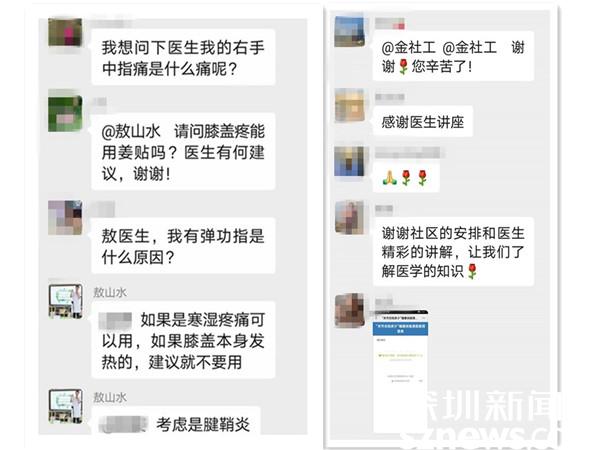 原來,老圍社區(qū)黨群服務(wù)中心的社工在服務(wù)中發(fā)現(xiàn),社區(qū)中不少中老年人有著各種各樣的關(guān)節(jié)疼痛,時不時并病痛折磨。在老圍社區(qū)黨委和老年協(xié)會的大力支持下,社工開展了這場線上活動,邀請深圳博愛曙光醫(yī)院外科醫(yī)生敖山水免費為社區(qū)居民講解關(guān)節(jié)炎的防治,幫助居民保護好關(guān)節(jié),管理好健康,讓今后的生活更優(yōu)質(zhì)。