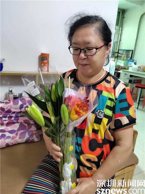 在活動過程中,11位組員都收到了一束鮮花,是社工利用空余時間,捧著花送到每位組員家中的。社工用鮮花敲開組員的家門,這就仿佛是一次家訪,收到花的組員開心地與社工合影。花開的時候,不少組員都拍下來發(fā)在群里,讓快樂與美好的氣氛在群里彌漫。組員袁春艷在微信群里說:“感謝人美心善的社工們,在工作異常忙碌的同時,不僅為我們精心準備干貨滿滿、精彩絕倫的減壓課,還為我們送來鮮花的芬芳!讓我日常雜亂的家變得美麗精致、花香彌散、情趣高雅!真的有太多向您學習的地方!愛您!”