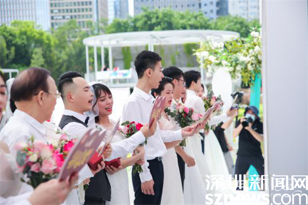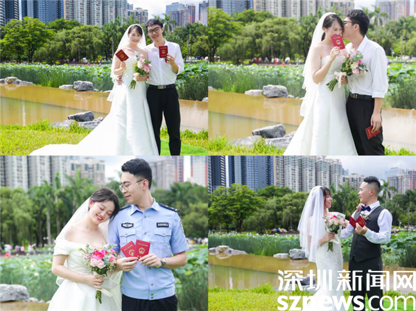 讀特客戶端·深圳新聞網(wǎng)2022年6月17日訊(記者 李慧 通訊員 楊嘉雯)6月中旬的洪湖公園,荷花盛開,17日早上,羅湖區(qū)民政局把婚姻登記頒證廳搬到這優(yōu)美環(huán)境、文明的氛圍中,舉辦“新時代心羅湖,荷創(chuàng)文明新婚俗”婚禮登記集體頒證儀式。現(xiàn)場以并蒂蓮為背景,以文明、時尚、簡約作為主題元素,提倡“重登記、強責(zé)任、崇節(jié)儉”的文明新婚俗。
