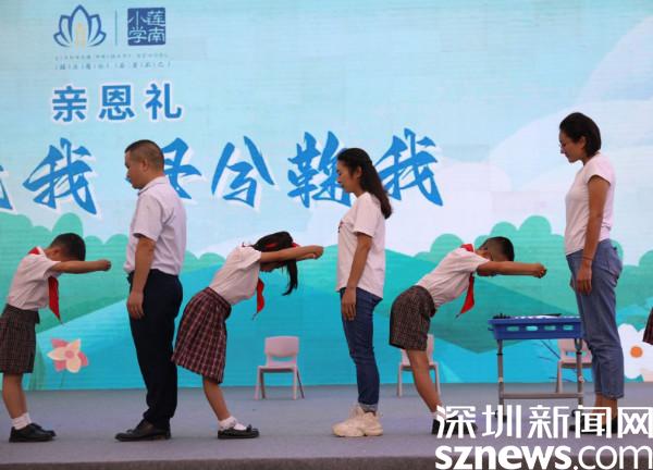 活動(dòng)由詩歌吟唱《鹿鳴》拉開了序幕?!案纲馍遥纲饩衔摇?,熒幕上播放著子女和父母溫馨互動(dòng)的視頻,隨后上演的親恩禮,表達(dá)了子女對(duì)父母的深深愛意。當(dāng)主持人問到一位家長(zhǎng)時(shí),她眼含熱淚地說:“我此刻很激動(dòng)也很幸福,孩子給我捶背還給我寫卡片,感謝這次儀式感滿滿的活動(dòng),拉進(jìn)了我們家長(zhǎng)和孩子的距離,真的非常暖心!”