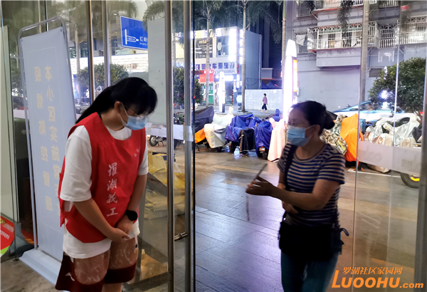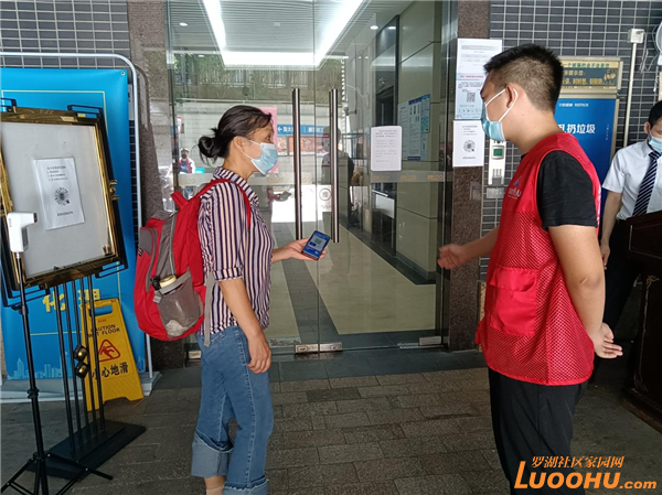 周玲負(fù)責(zé)的卡口是老圍花園的E單元出入口,這是兩棟高層住宅,出入人員較多。她不厭其煩,一個一個地引導(dǎo)掃碼,一個一個地查看??吹缴泶┘t馬甲的小姑娘,許多居民也主動配合掃碼。有人推著行李箱進(jìn)來,小姑娘也會主動詢問從哪里來,是不是風(fēng)險地區(qū)?兩個小時的值守,她不喝一口水,不離崗一步。天氣很熱,她滿頭大汗,卻從不言苦。周玲說,能參與到社區(qū)的防疫工作中,很開心,也很值得。