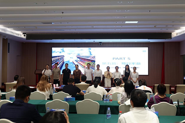 結(jié)業(yè)儀式現(xiàn)場,五組學(xué)員圍繞培訓(xùn)的主題,通過不同的方式生動地展示了大家在這次“雛鷹訓(xùn)練營”培訓(xùn)中的所思所想所感所悟。第一組學(xué)員通過視頻和演講強調(diào)學(xué)思想、強能力、重實踐的重要性;第二組圍繞招商引資工作形成新聞聯(lián)播;第三組通過情景劇的形式記錄了信訪工作的24小時;第四組通過“民生面對面”為大望梧桐片區(qū)建設(shè)建言獻策;第五組改編的歌曲《最偉大的棚改》“聲”入人心。大家紛紛表示,通過此次培訓(xùn)學(xué)習(xí),對以后的工作有著重要的指導(dǎo)作用。
