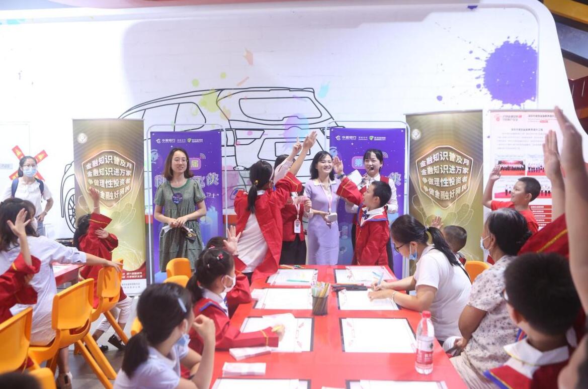 華夏銀行消保宣講員們通過(guò)通俗易懂的語(yǔ)言、趣味橫生的案例教授孩子們?nèi)绾畏婪督鹑隍_局